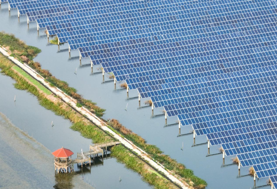 图为10月11日拍摄的江苏省兴化市千垛镇连片的光伏发电板。(图片来源:新华社)